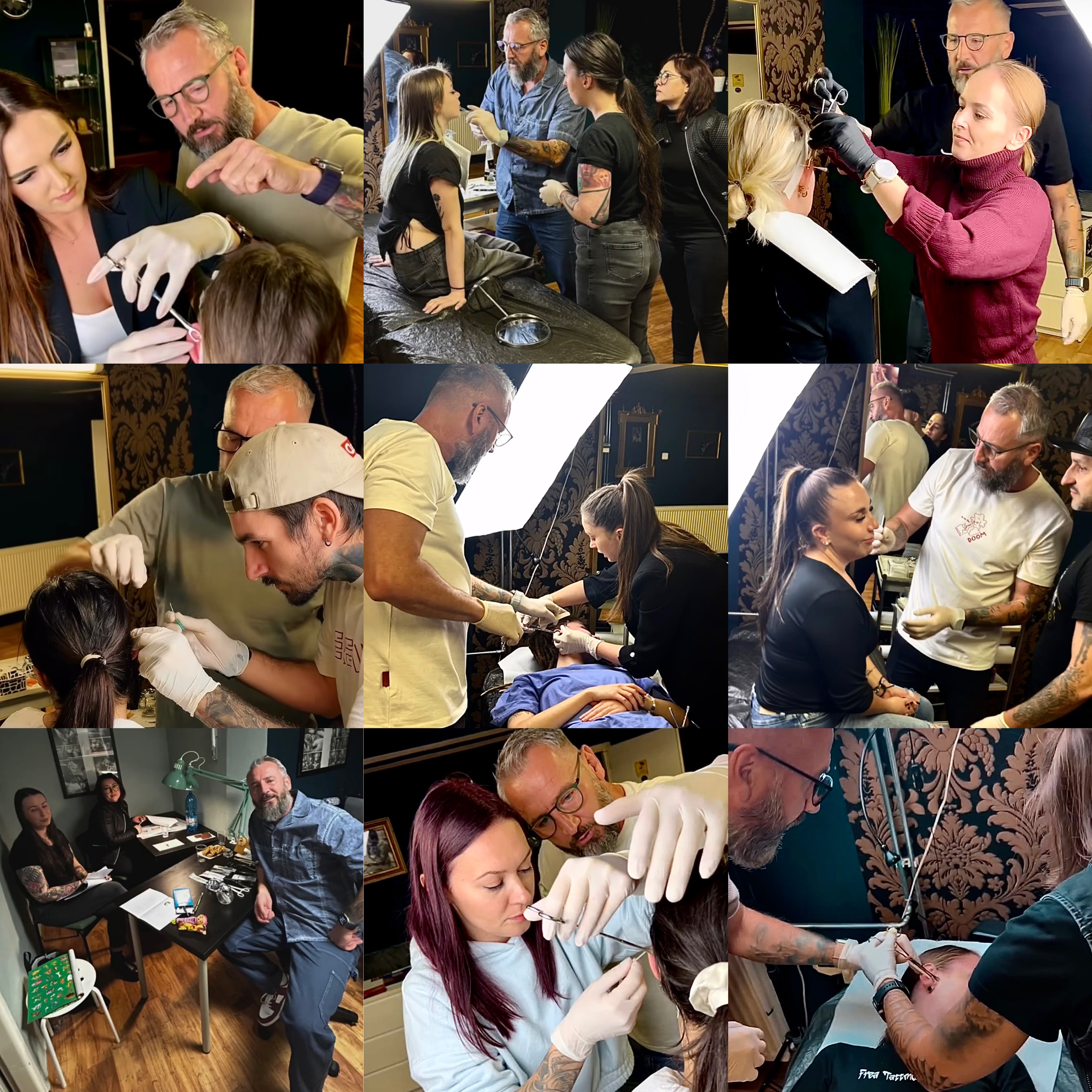 Osnova kurzu: teoretická časť (história, ľudské telo,koža,dezinfekcia,sterilizácia,druhy piercingov,druhy šperkov, spôsoby aplikácia,vhodné miseta aplikácie, ošetrovanie čerstvého piercingu,managment zákazníka a atď...) praktická časť (praktický tréning na silikonových maketách, aplikácia piercingu na modela) Ukončenie kurzu: praktickou skúškou a certifikátom o absolvovaní (záverečná praktická skúška, je aplikácia piercingu na modela)